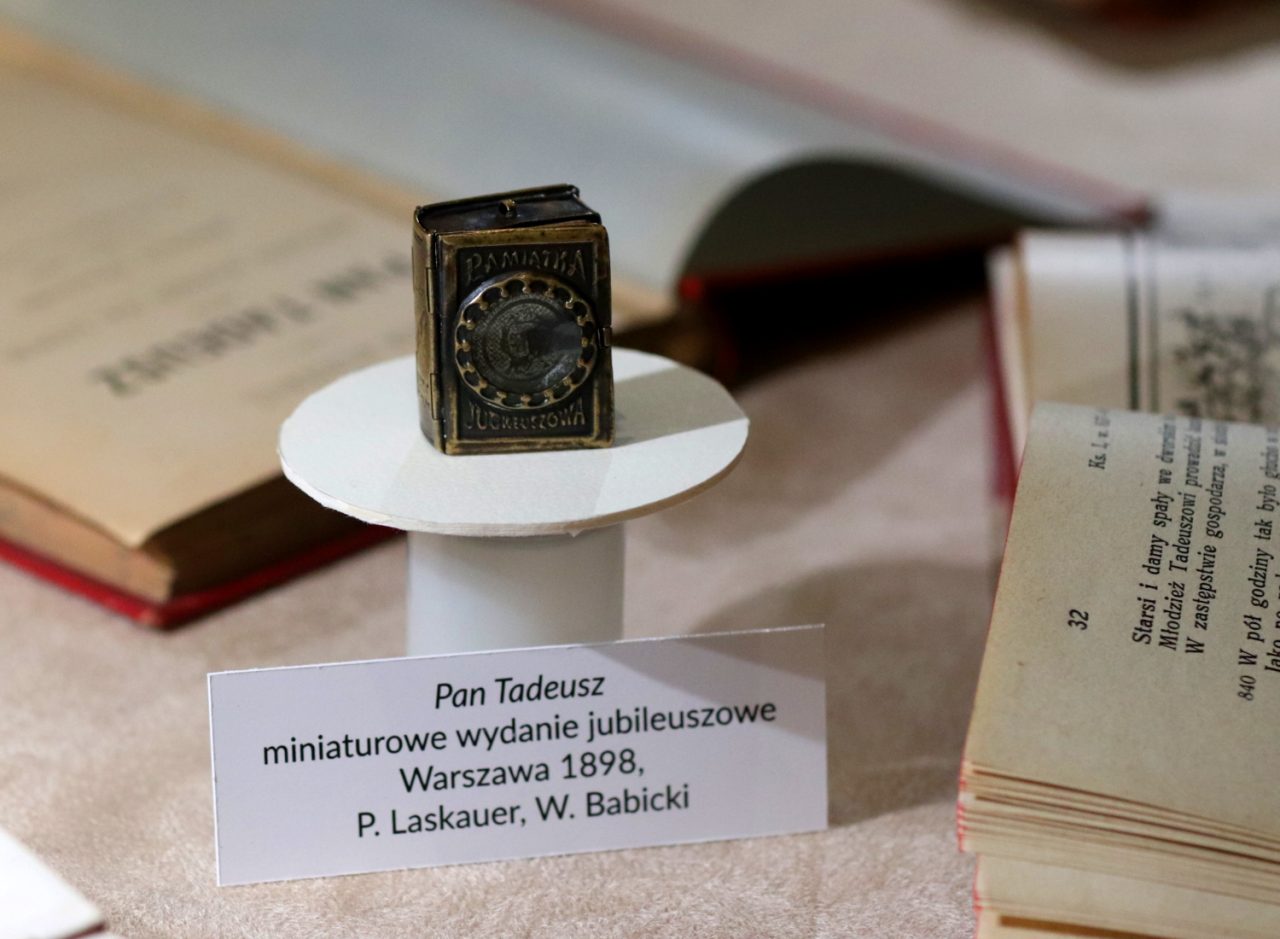 Do 14 maja w muzealnej piwnicy eksponowana jest wystawa złożona z kilkudziesięciu wydań Pana Tadeusza. Kolekcja jest własnością profesora Jerzego Bralczyka. Wśród eksponatów znajduje się m.in. I wydanie z 1834r. z portretem Adama Mickiewicza w stalorycie Antoniego Oleszczyńskiego wg medalionu Pierre’a-Jeana Dawida d’Angers. Inną niezwykle ciekawą pozycją jest miniatura (2x3cm) wykonana techniką fototypiczną, umieszczona w metalowej kasetce zaopatrzonej w szkło powiększające. Jest to wydanie jubileuszowe z 1898r., upamiętniające setną rocznicę urodzin autora.