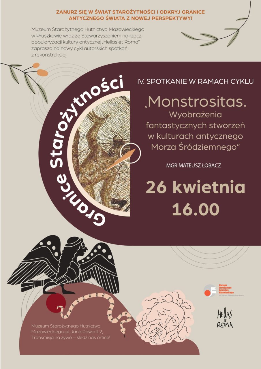 Stowarzyszenie Na Rzecz Popularyzacji Kultury Antycznej „Hellas et Roma” wraz z MSHM w Pruszkowie zaprasza na cykl nowych, autorskich wykładów „Granice Starożytności”.