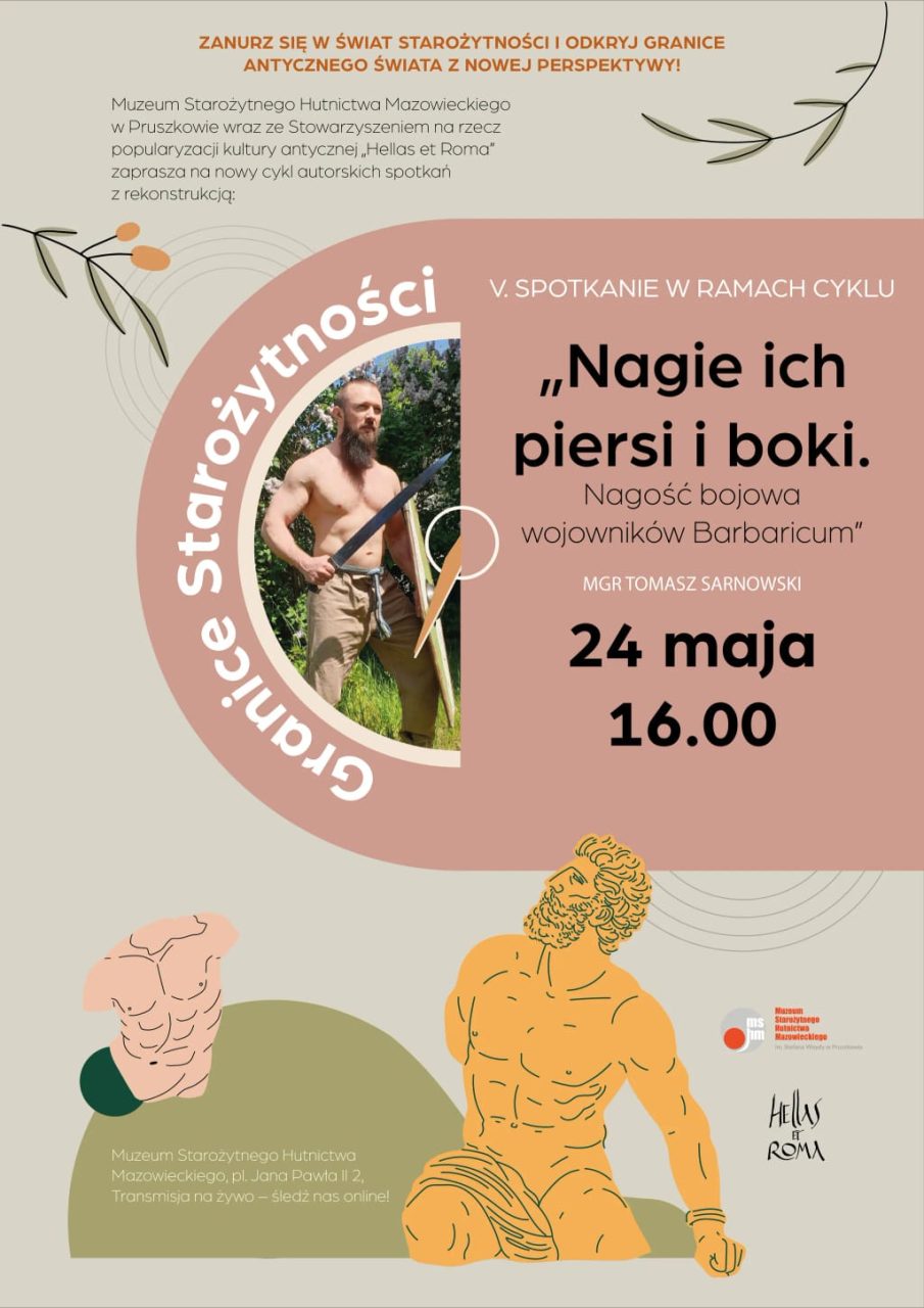 Zapraszamy na wykład z cyklu „Granice Starożytności: „Nagie ich piersi i boki. Nagość bojowa wojowników Barbaricum.” – razem zanurzymy się w świat bitew, gdzie zbroja była zbędna, a ciało – bronią i manifestem.